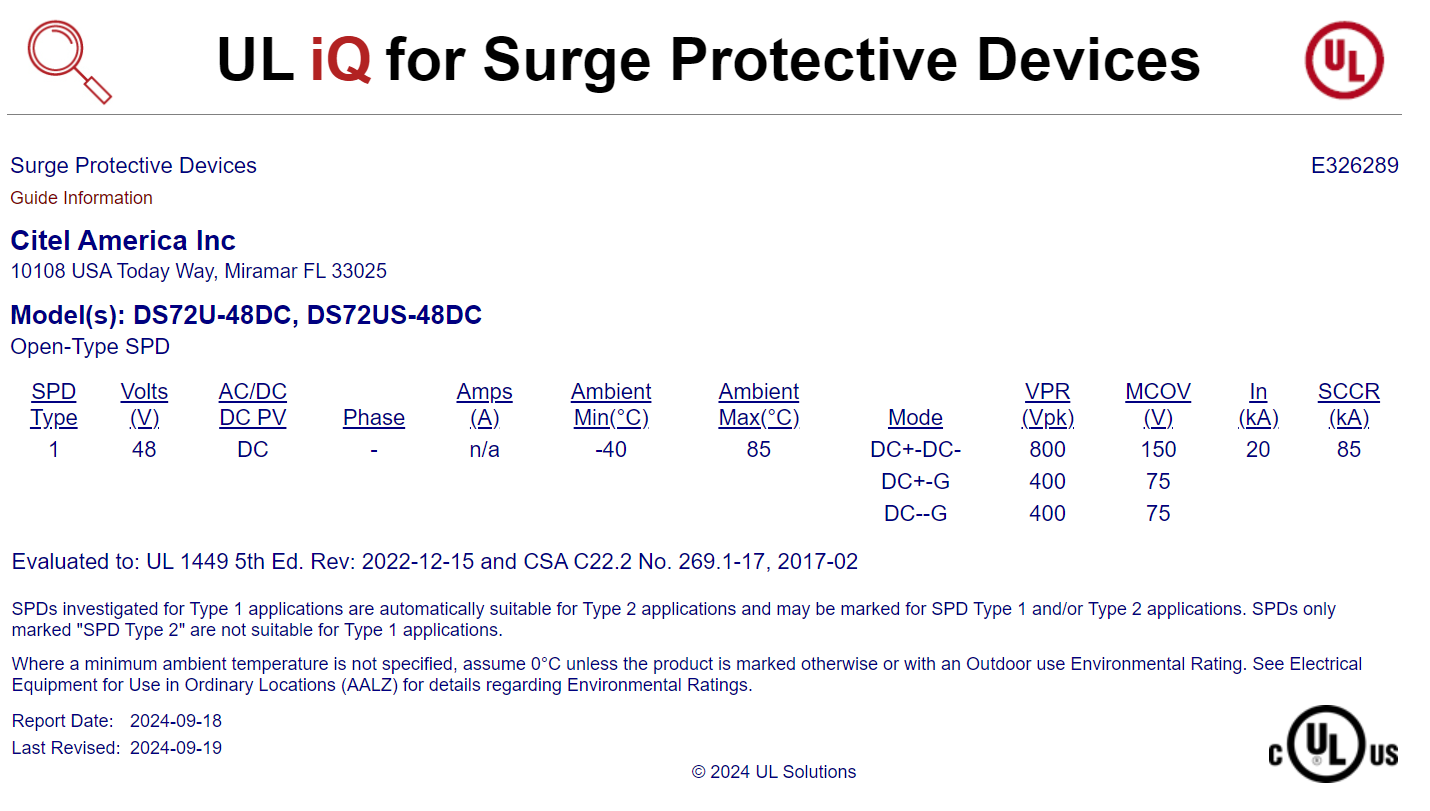 IEC 61643-11 / EN 61643-11 / UL1449 ed.5
