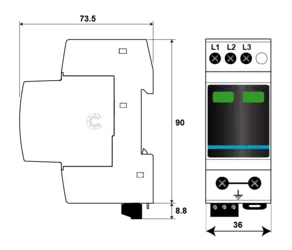 By screw terminals: L/N = 1.5-10mm² (16mm² rigid) or PE = 2.5-25mm² (35mm² rigid)