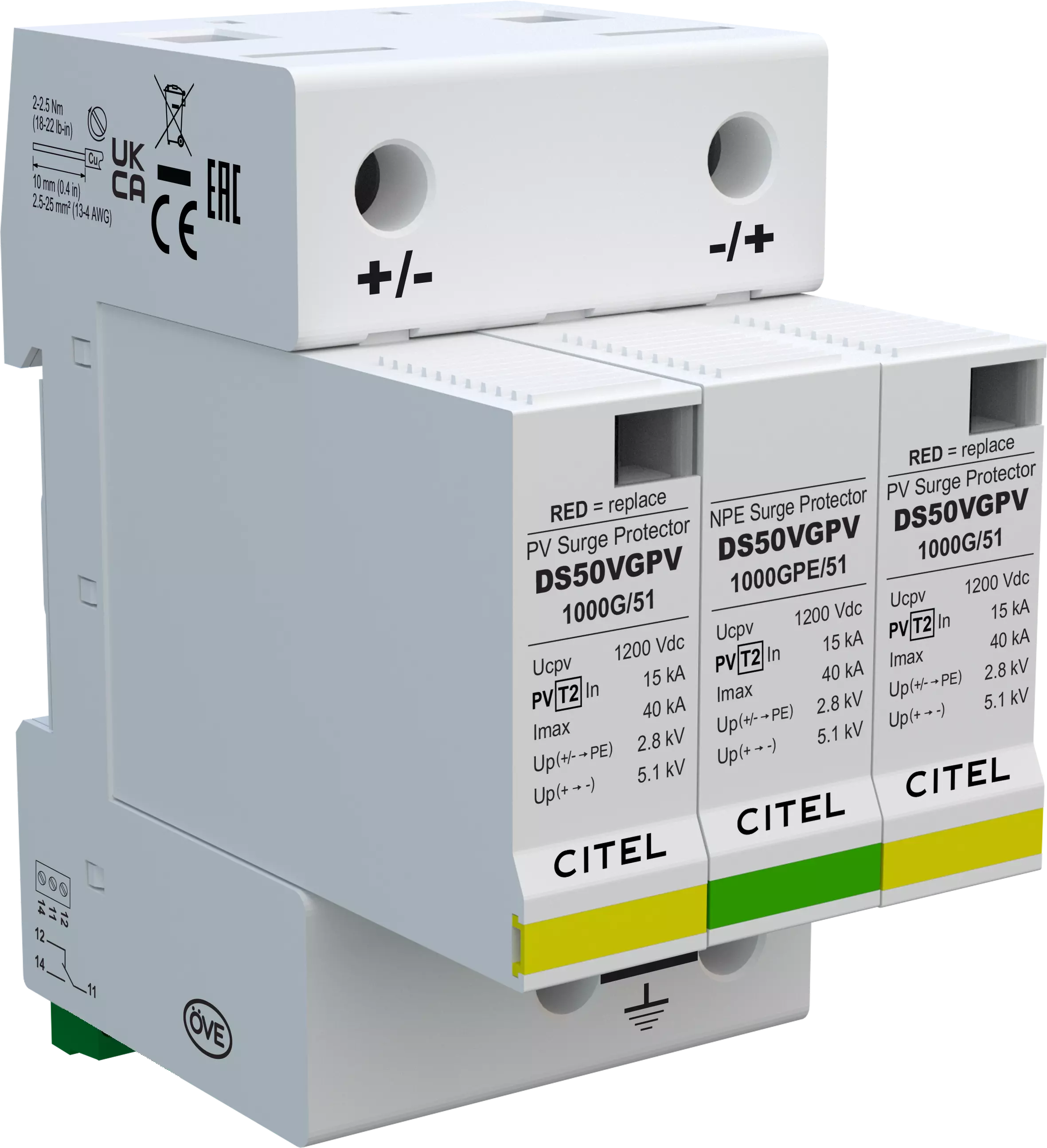 Surge Protection for photovoltaic systems FAMILY HOUSE Complete protection for all areas In practice, a distinction is made between houses with or without external lightning protection. Is there no external lightning lightning protection is required, it can be assumed that no increased There is a danger of direct lightning strike. The surge protection on the DC side of the photovoltaic system must therefore only be implemented against indirectly coupled overvoltages. In this case, an SPD type 2 (DS50VGPVS) must be provided on both the PV generator and the inverter. If the cable lengths between generator and inverter are negligible (<10m), then one of the two surge protection devices can be dispensed with. The string lines of the generator cabling may form a large induction loop in case of inductively coupling overvoltage events such as near strikes of lightning in a radius of about 2 km. In order to achieve an increased safety level beyond the normative requirements, CITEL recommends the use of a combined lightning arrester type 1+2 (DS50VGPVS/12KT1) even in buildings without external lightning protection. On the AC side, type 1+2+3 combination arresters (ZPAC or DAC1-13VGS) in the meter cabinet offer optimum protection. This protects the AC input of the inverter and the electrical installation of the building equally. For houses with external lightning protection, which is usually not mandatory, further regulations apply, about which we will be happy to provide you with detailed information if required. Back to top of page TRADE & INDUSTRY Complete protection concept Since commercial and industrial buildings are usually properties with high material assets and public institutions are buildings with sensitive information and data material, complete protection is particularly important here. A combination arrester T1+2+3, such as the DS250VG or the DUT250VG, guarantees the best possible protection of the AC side by a low protection level < 1500V, combined with a total lightning current discharge capacity of 100 kA (25kA/pole). Back to top of page SOLAR FARMS Efficient protection PV power plants today are equipped with more and more technology. In addition to monitoring systems for pure performance monitoring, this includes, above all, more and more sensor technology for recording and evaluating ambient conditions such as ambient temperature, module temperature, irradiation and wind speed. Also the currents of the individual strings are often precisely recorded. In addition, tracking systems are sometimes also used for automatic tracking of the modules according to the position of the sun. The protection of all these systems is particularly important here. Therefore, these data and control lines should be consistently included in the design of the protection concept. Open space systems have a larger spatial extension and thus a higher lightning hazard during thunderstorms than compact systems on the roof. EN 61643-32 takes this fact into account by requiring the use of type 1 surge arresters on the DC side of ground-mounted systems. Back to top of page STATE OF THE ART Normative requirements For the professional installation of a lightning and overvoltage protection concept for PV systems, only the pre-standard VDE V 0675-39-12 (CLC/TS 50539-12) was available to the user in addition to supplement 5 of the lightning protection standard VDE 0185-305-3 (EN 62305-3) and the information provided by the Verband der Sachversicherer e.V. in the VdS-Merkblatt 2010. Since September 2017, the new application standard IEC 61643-32 ED1 has been published on an international level, which is implemented nationally in the VDE 0675-6-32 draft. The new DIN VDE 0100-712 now also contains additional requirements for the protection of systems against overvoltages. The new IEC 61643-32 is essentially based on the well-known VDE V 0675-39-12. Both standards deal with selection and application principles of surge protection devices for use in photovoltaic installations. Furthermore, specifications for the selection and installation of surge protection devices on the DC and AC side are given. The IEC 61643-32 states literally: "The installation of SPDs on the DC and AC side of a PV system is mandatory, unless otherwise specified in a risk analysis ..." The new IEC 61643-32 also requires the use of SPDs for data and communication lines ("When SPDs are installed to protect the PV system, it is necessary to protect all telecommunications and signal circuits that are part of the PV system ..."). The obligation to protect photovoltaic systems against overvoltages protection also results from the new DIN VDE 0100-712. This refers first of all to Supplement 5 of the lightning protection standard VDE 0185-305-3 (EN 62305-3): "The selection and installation of surge protection devices (SPDs) in PV systems must be carried out according to DIN EN 62305-3 Supplement 5 (VDE 0185-305-3 Supplement 5)." This supplement 5 in turn contains the requirement: "The need for surge protection measures on the AC side of the PV power supply system is determined according to DIN VDE 0100-443." As is well known, this in turn makes the use of SPDs mandatory in every installation. Furthermore the DIN VDE 0100-712: states "If transient overvoltage protection is required by DIN VDE 0100-443, section 443, such protection must also be applied on the DC side of the PV system." Minimum requirement according to DIN VDE 0100-712 Appendix C Situation AC main distribution Inverter PV generator field AC-site DC-site Building without lightning protection SPD Typ 2 SPD Typ 2 SPD Typ 2 SPD Typ 2 Building with lightning protection, separation distance maintained SPD Typ 1 SPD Typ 2 SPD Typ 2 SPD Typ 2 Building with lightning protection, separation distance not maintained SPD Typ 1 SPD Typ 1 SPD Typ 1 SPD Typ 1 Further normative minimum requirements Cross sections: Potential equalization conductors not carrying lightning current: At least 6 mm² copper or equ